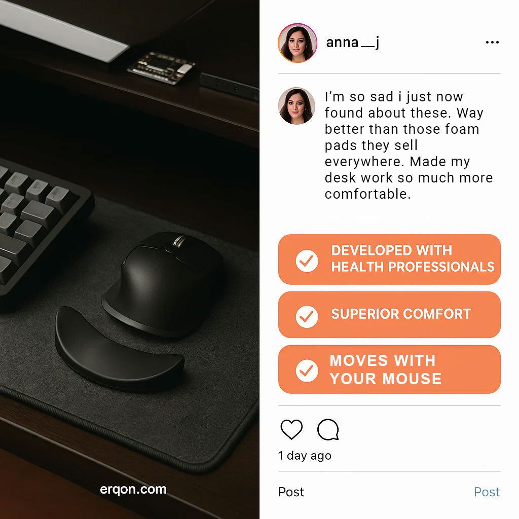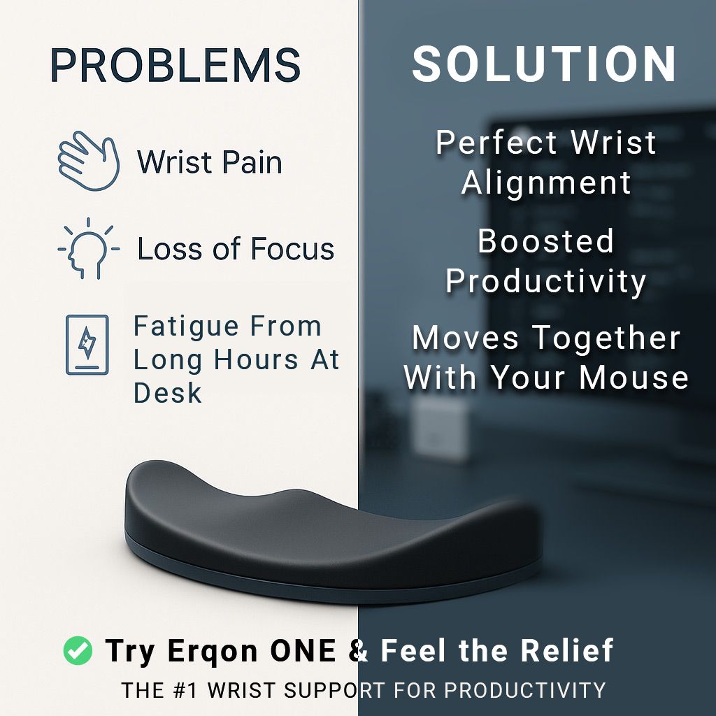 Long hours at a desk can put extra stress on your wrists if your setup isn’t supportive. That’s why Erqon ONE was created — a simple yet effective way to encourage a natural wrist angle and maintain lasting comfort. Its ergonomic design works with your movements, helping you stay focused and productive all day long.